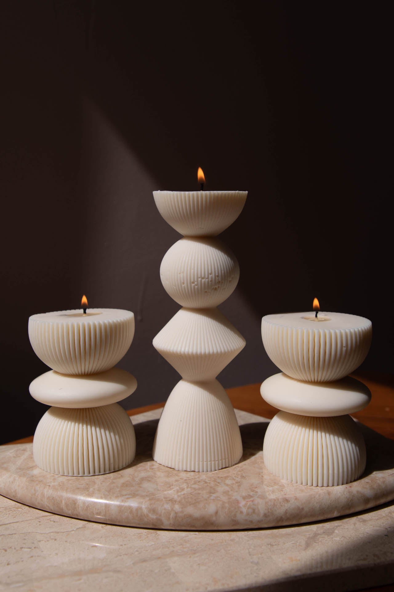 Our sculptural candles are designed to be used as decor. If you choose to light them, burn time will vary due to their irregular shapes and candle size. We estimate the below: