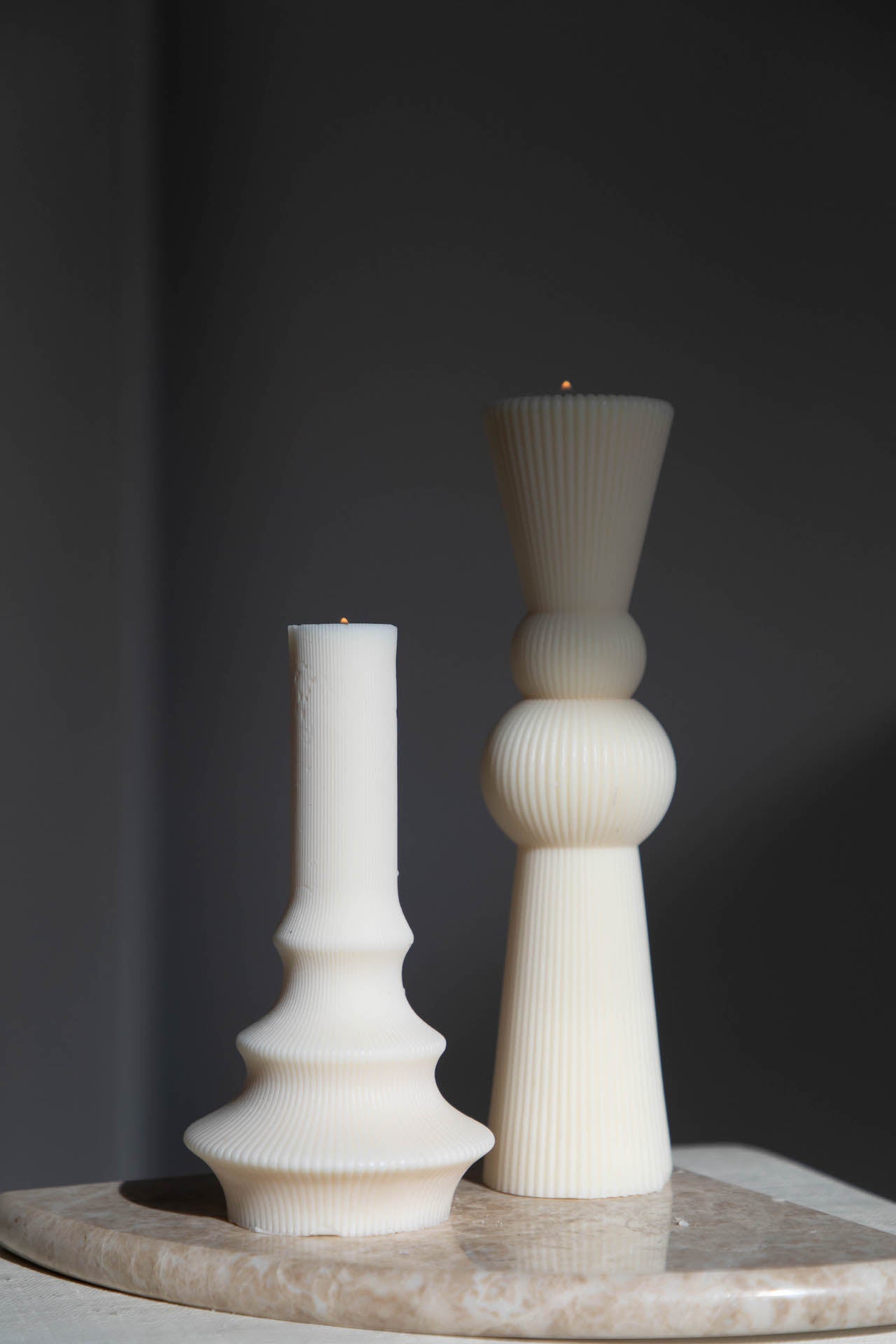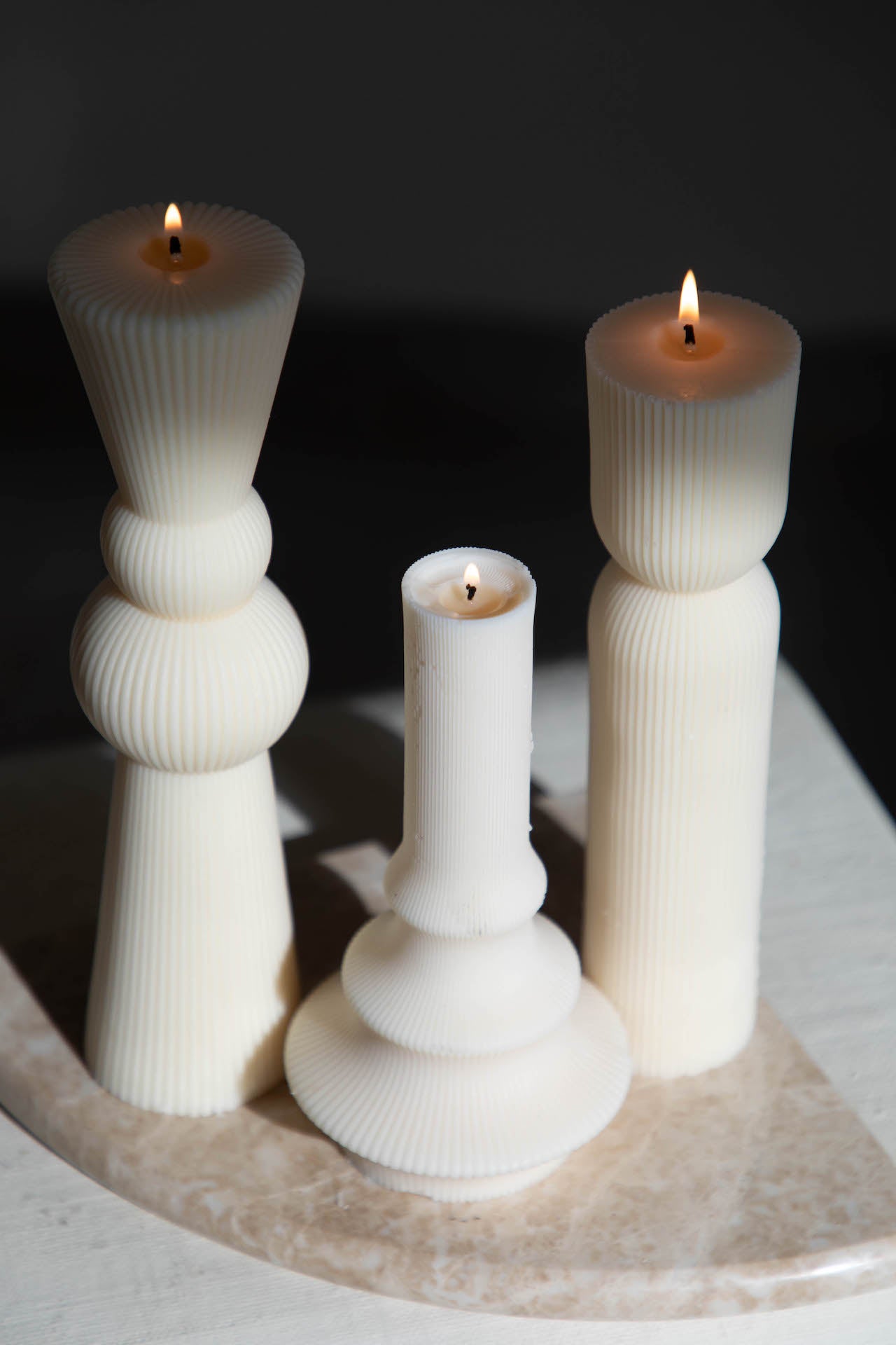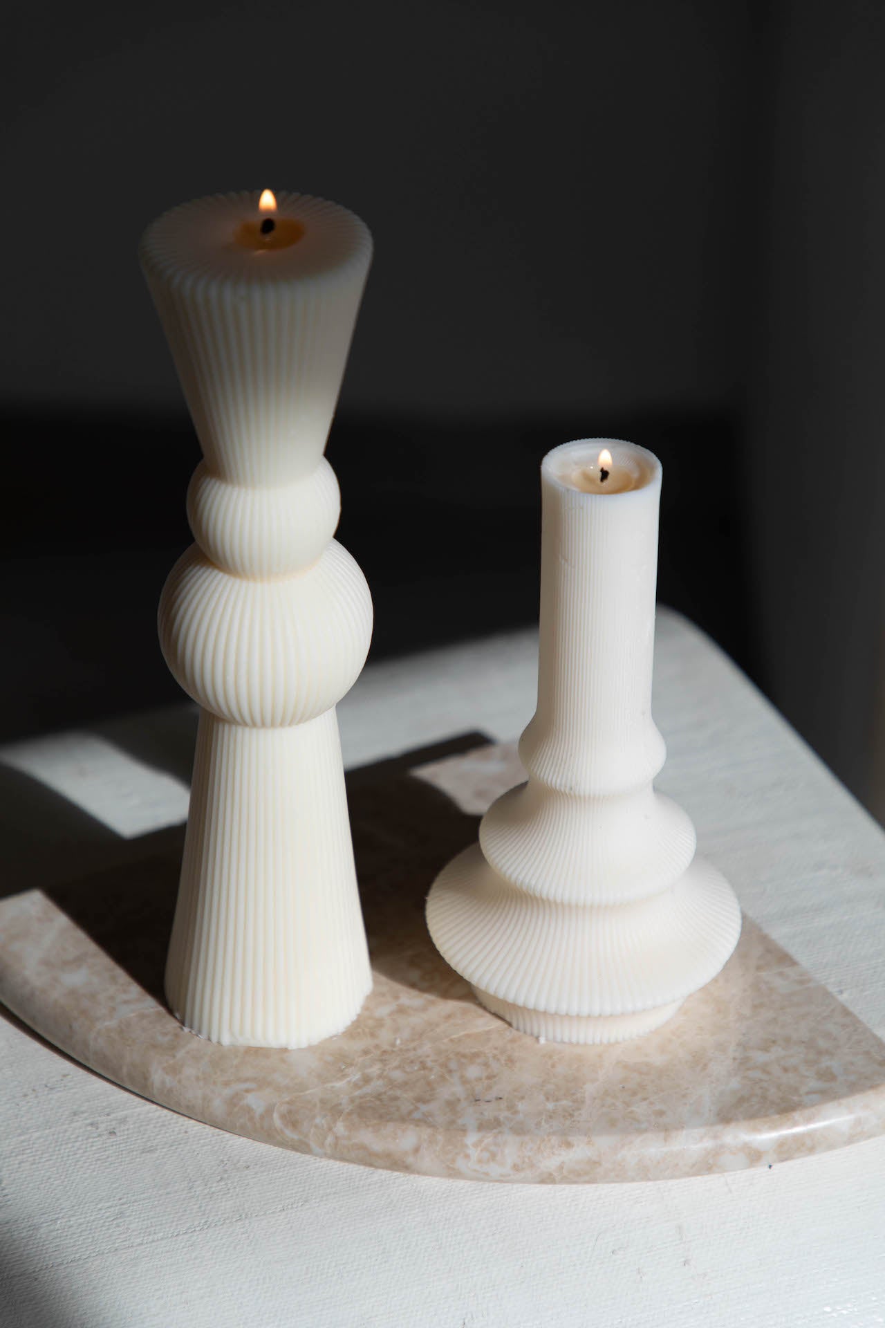 Our sculptural candles are designed to be used as decor. If you choose to light them, burn time will vary due to their irregular shapes and candle size. We estimate the below: