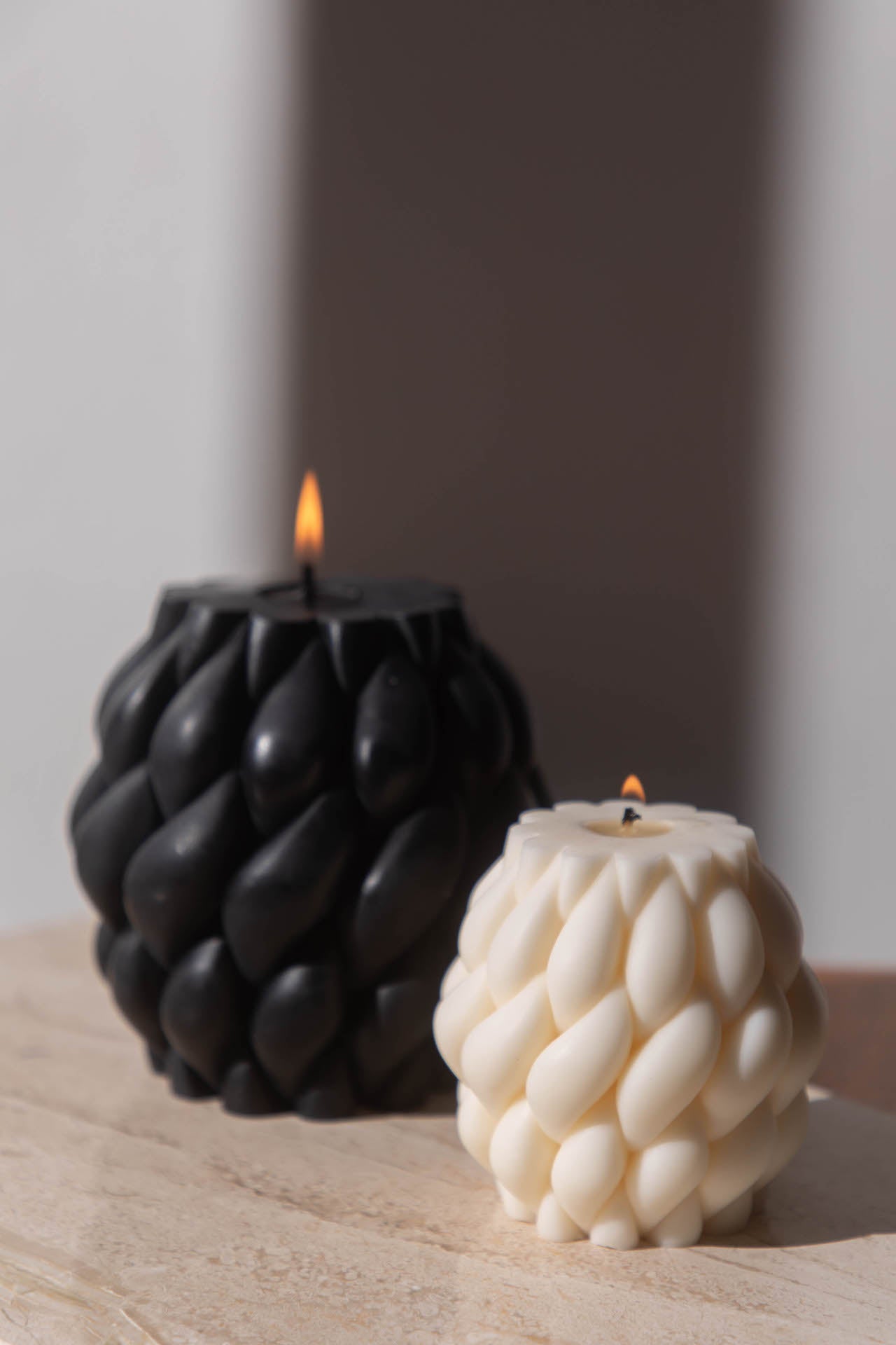 Our sculptural candles are designed to be used as decor. If you choose to light them, burn time will vary due to their irregular shapes and candle size. We estimate the below: