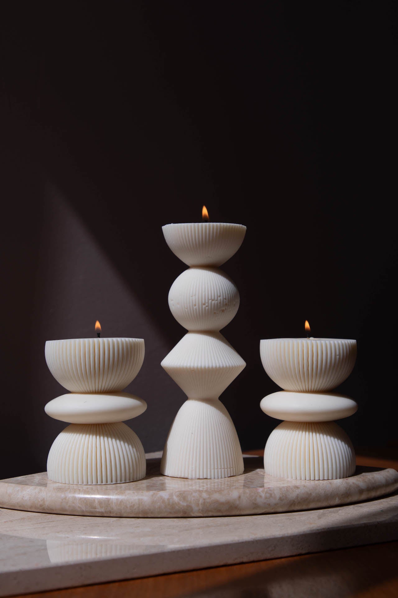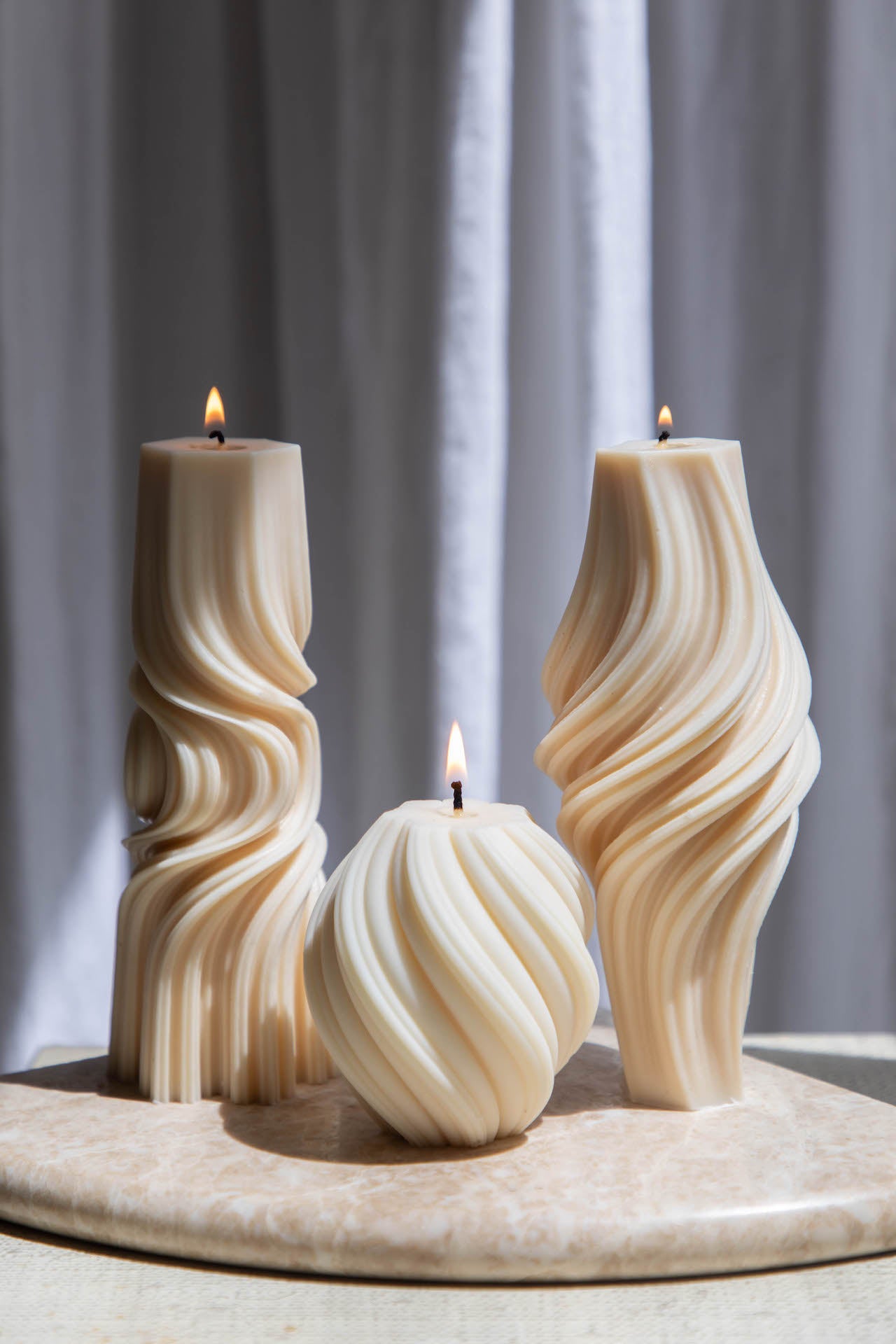 Our sculptural candles are designed to be used as decor. If you choose to light them, burn time will vary due to their irregular shapes and candle size. We estimate the below: