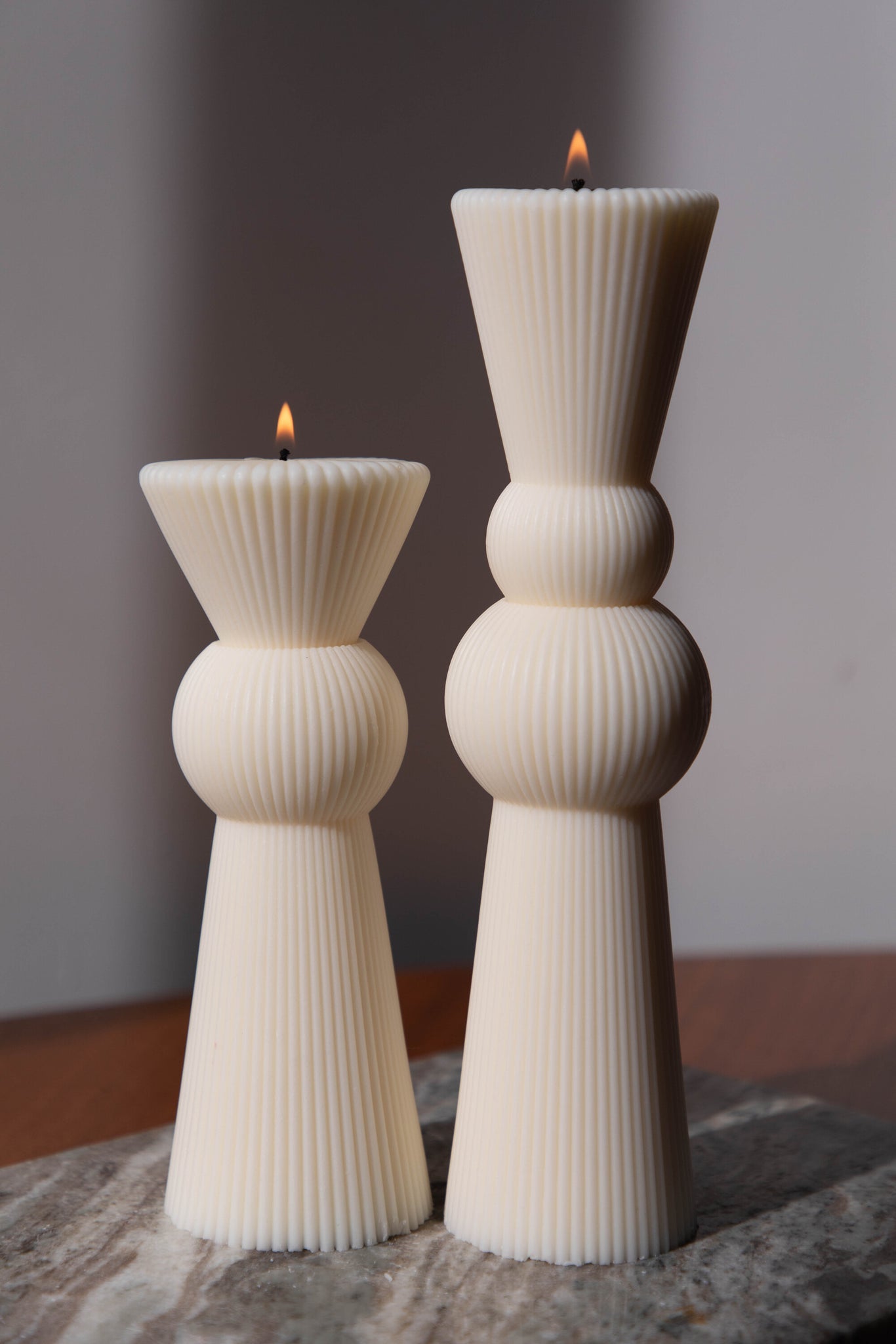 Our sculptural candles are designed to be used as decor. If you choose to light them, burn time will vary due to their irregular shapes and candle size. We estimate the below: