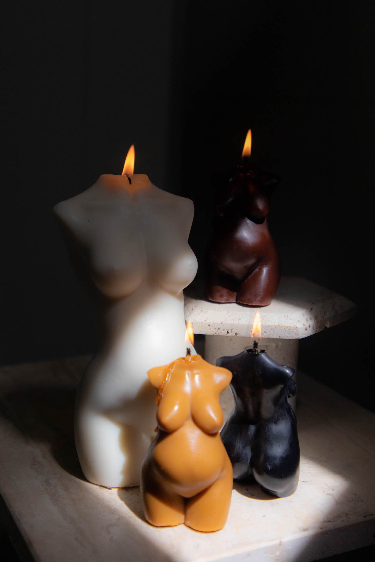 Our Ejani candle comes in 3 sizes and all four color variations. Made from a natural soy + beeswax blend and hand-poured in Dakar, Senegal.