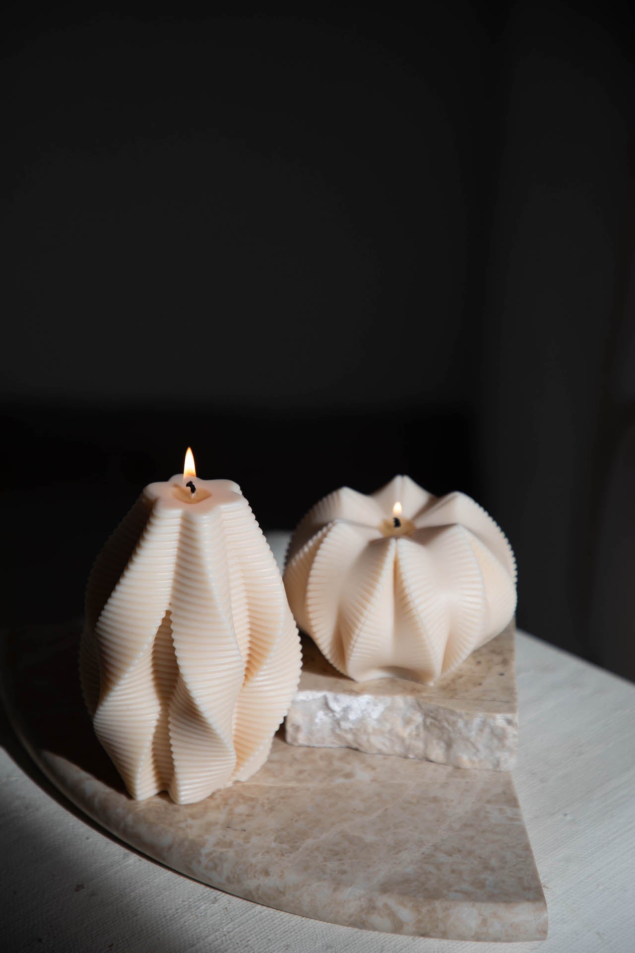 Our sculptural candles are designed to be used as decor. If you choose to light them, burn time will vary due to their irregular shapes and candle size. We estimate the below: