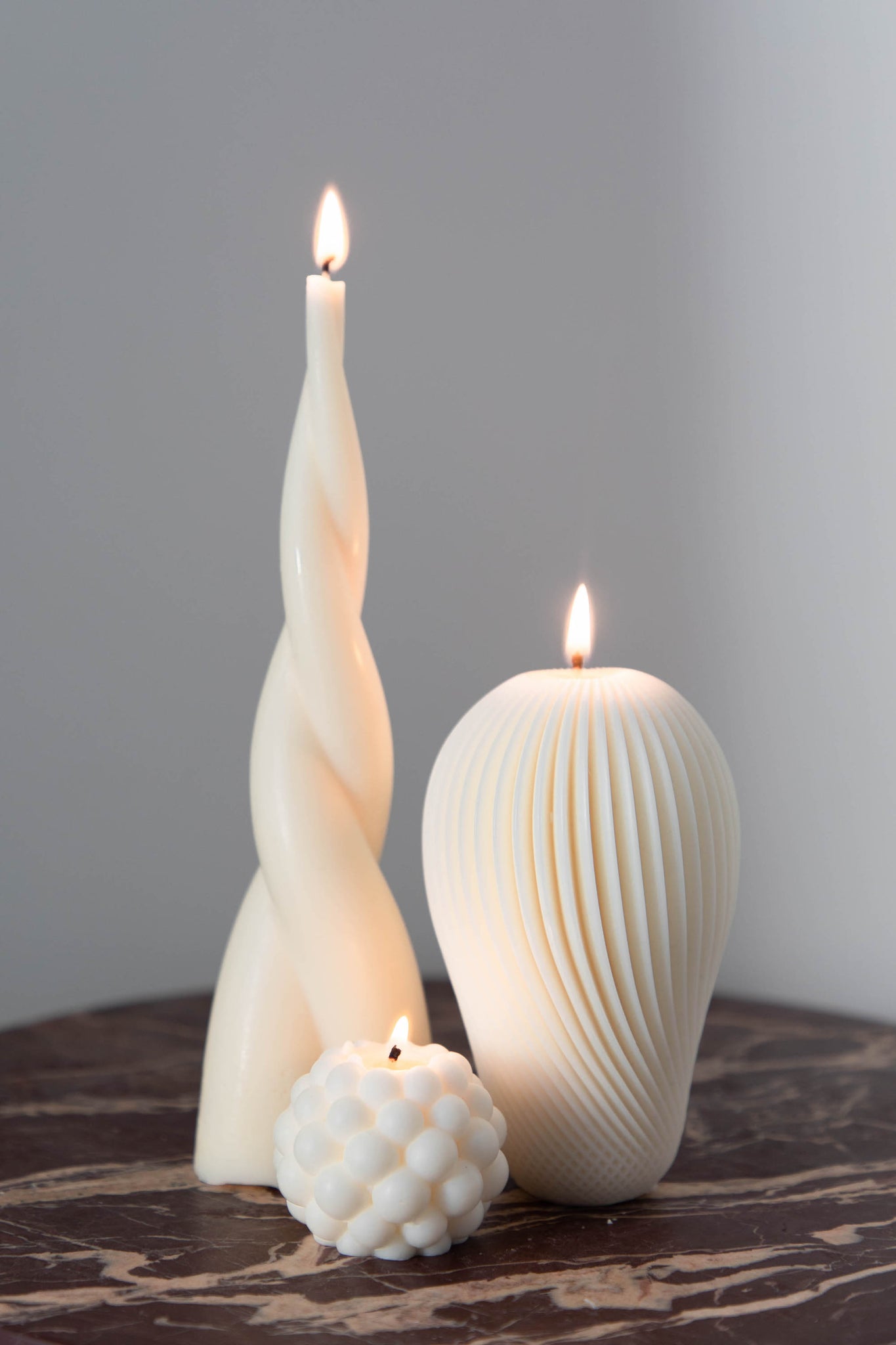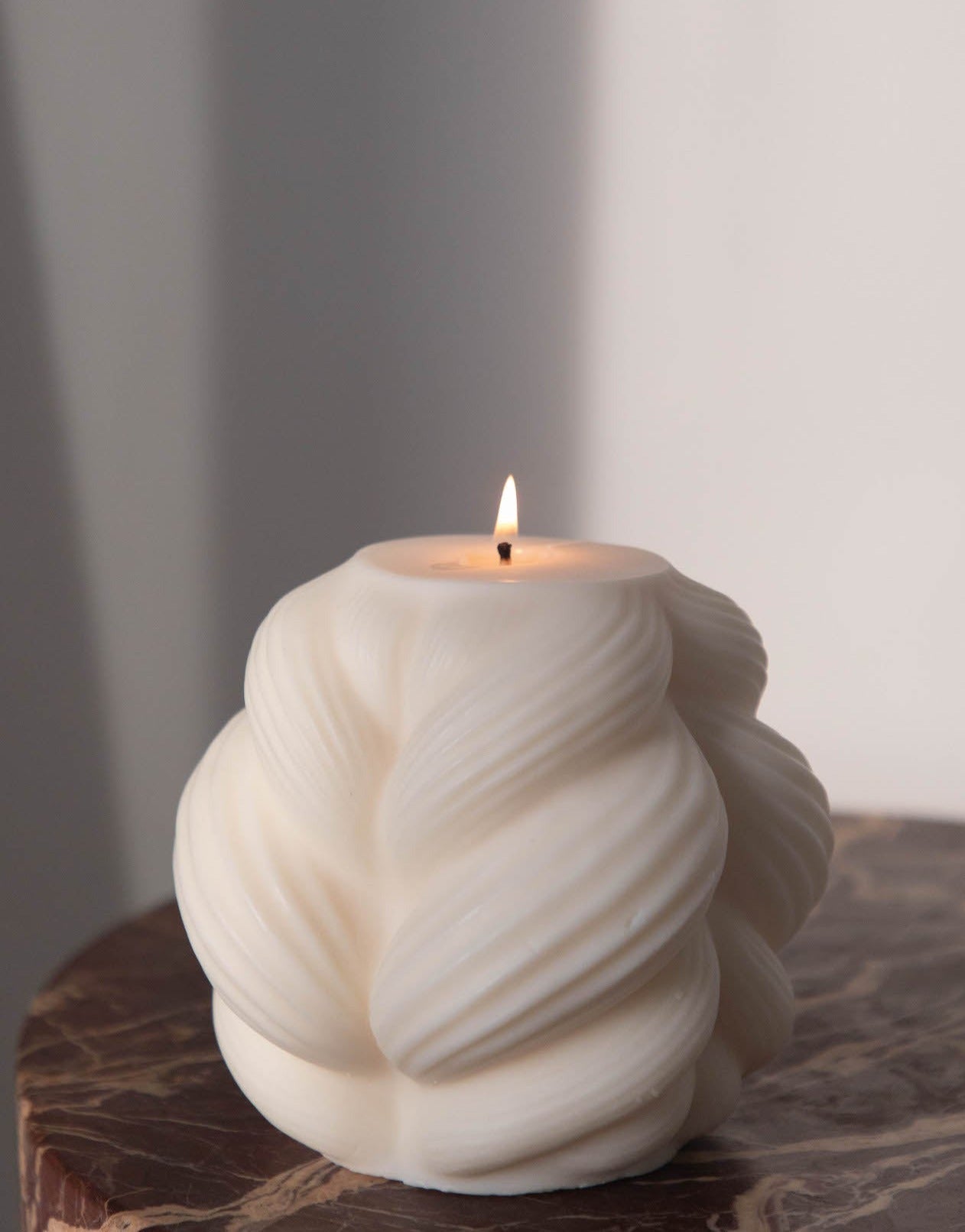 Elegant and statuesque, our Etina candle comes in 1 Swirl size and is made from a natural soy + beeswax blend and hand-poured in Dakar, Senegal.