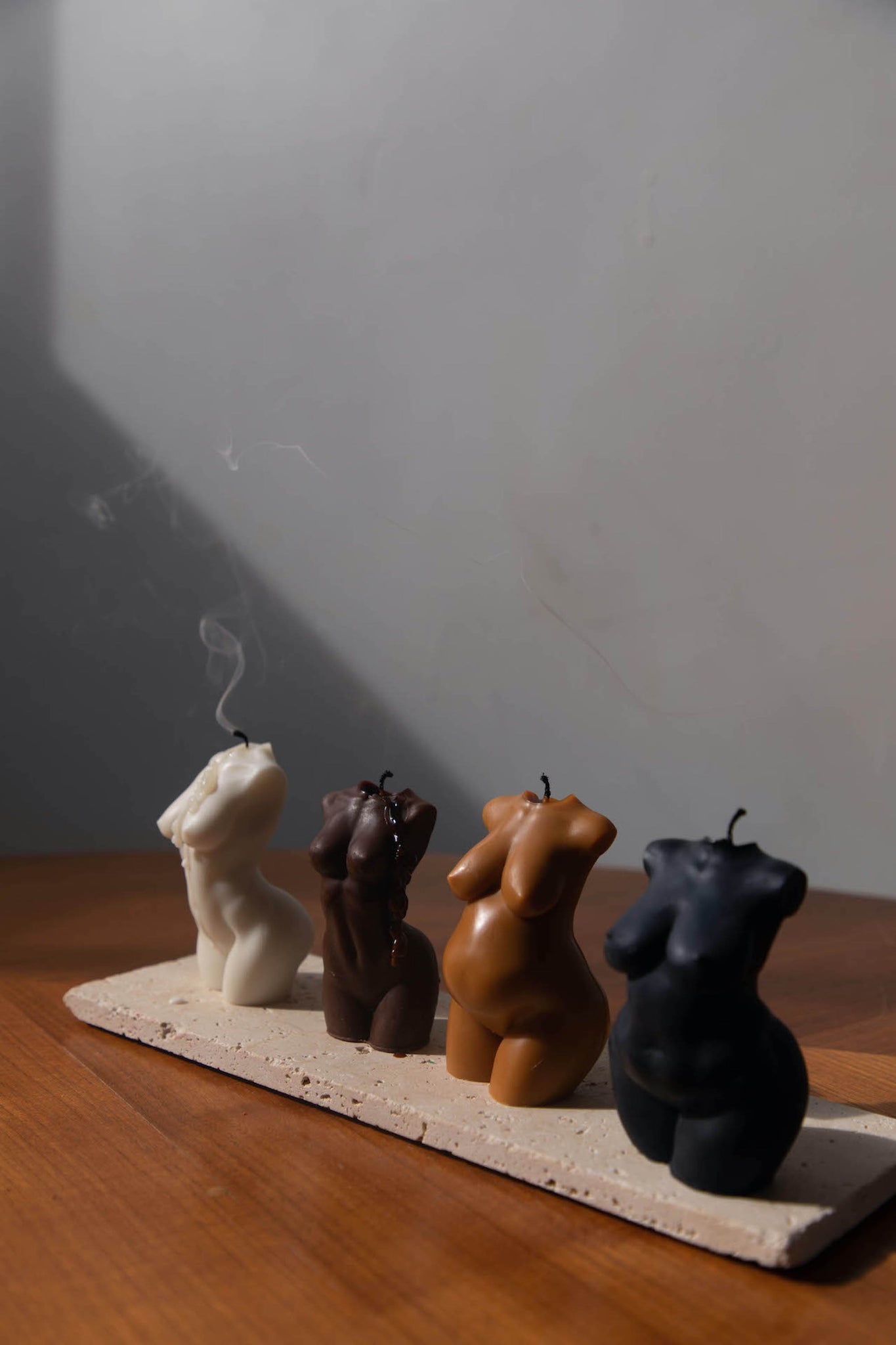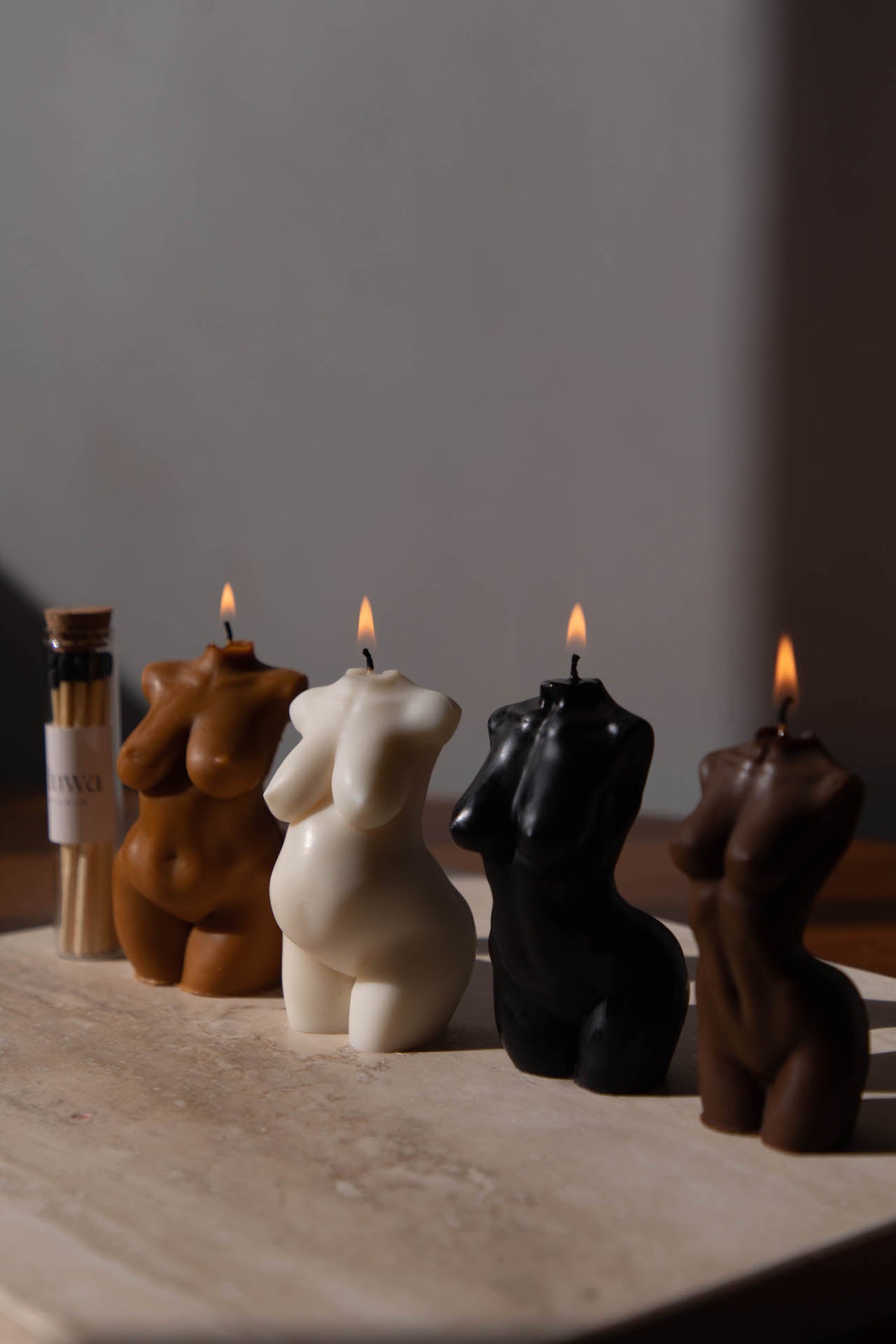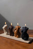 Features 4 small body candles and includes 1 ivory, 1 tan, 1 brown, and 1 black candle.