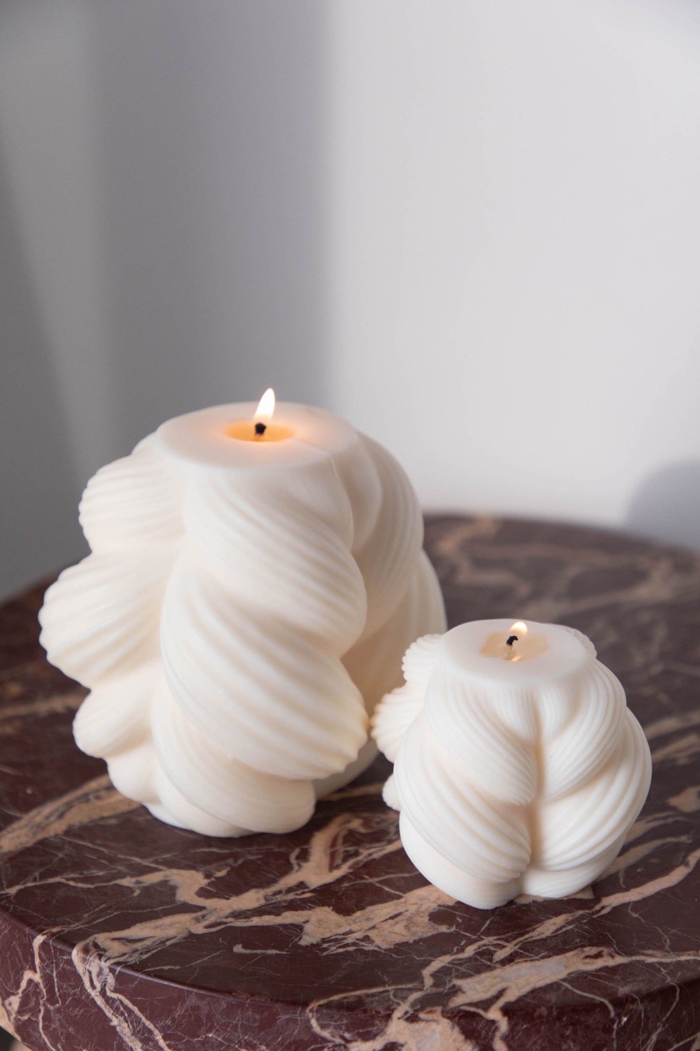 Our sculptural candles are designed to be used as decor. If you choose to light them, burn time will vary due to their irregular shapes and candle size. We estimate the below:
